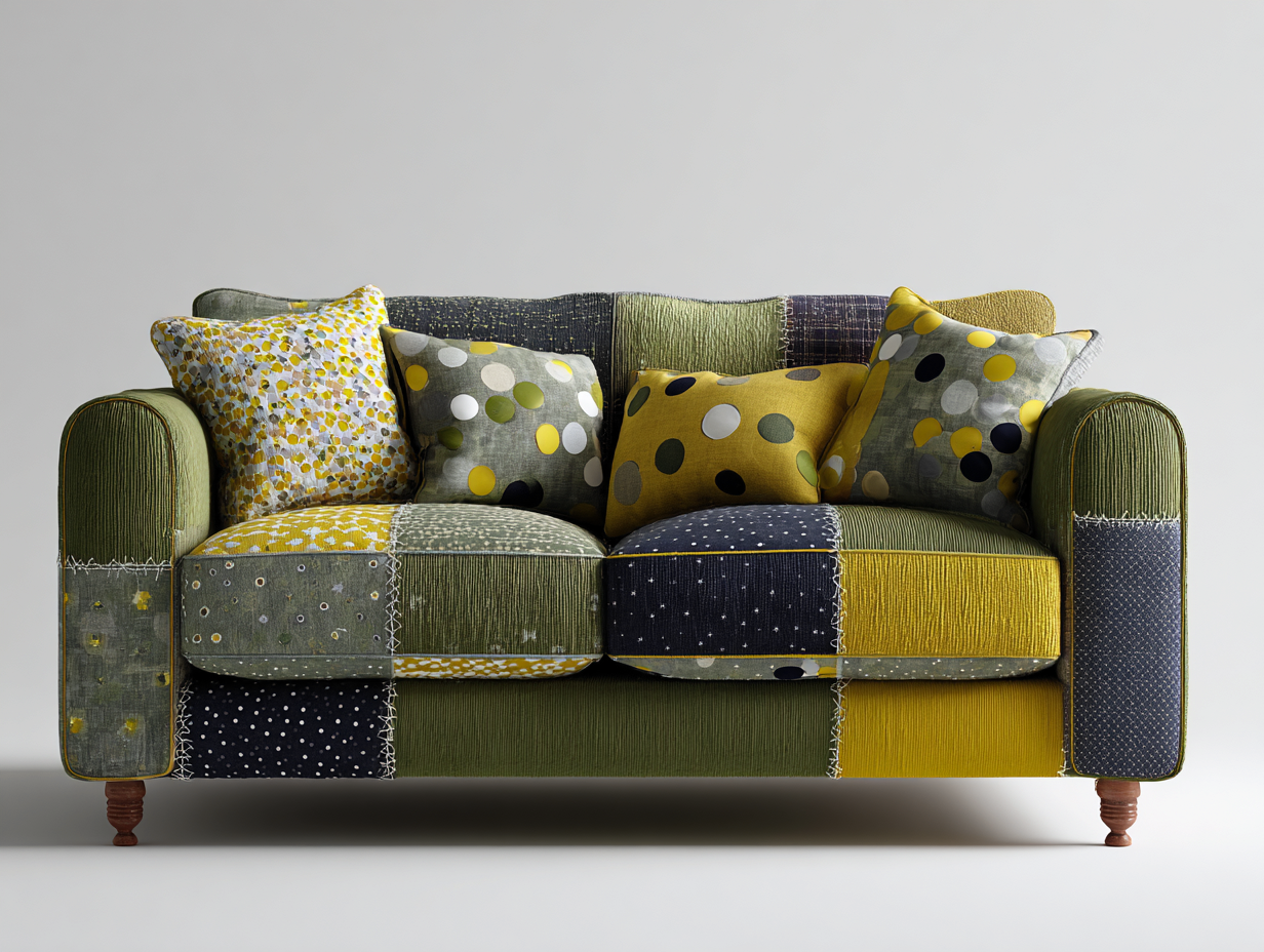Zweisitzer Sofa Patchwork Stoff gepolstert 168x86x78 cm - Grün-Gelb-Blau - Für Wohnzimmer - Modernes Design