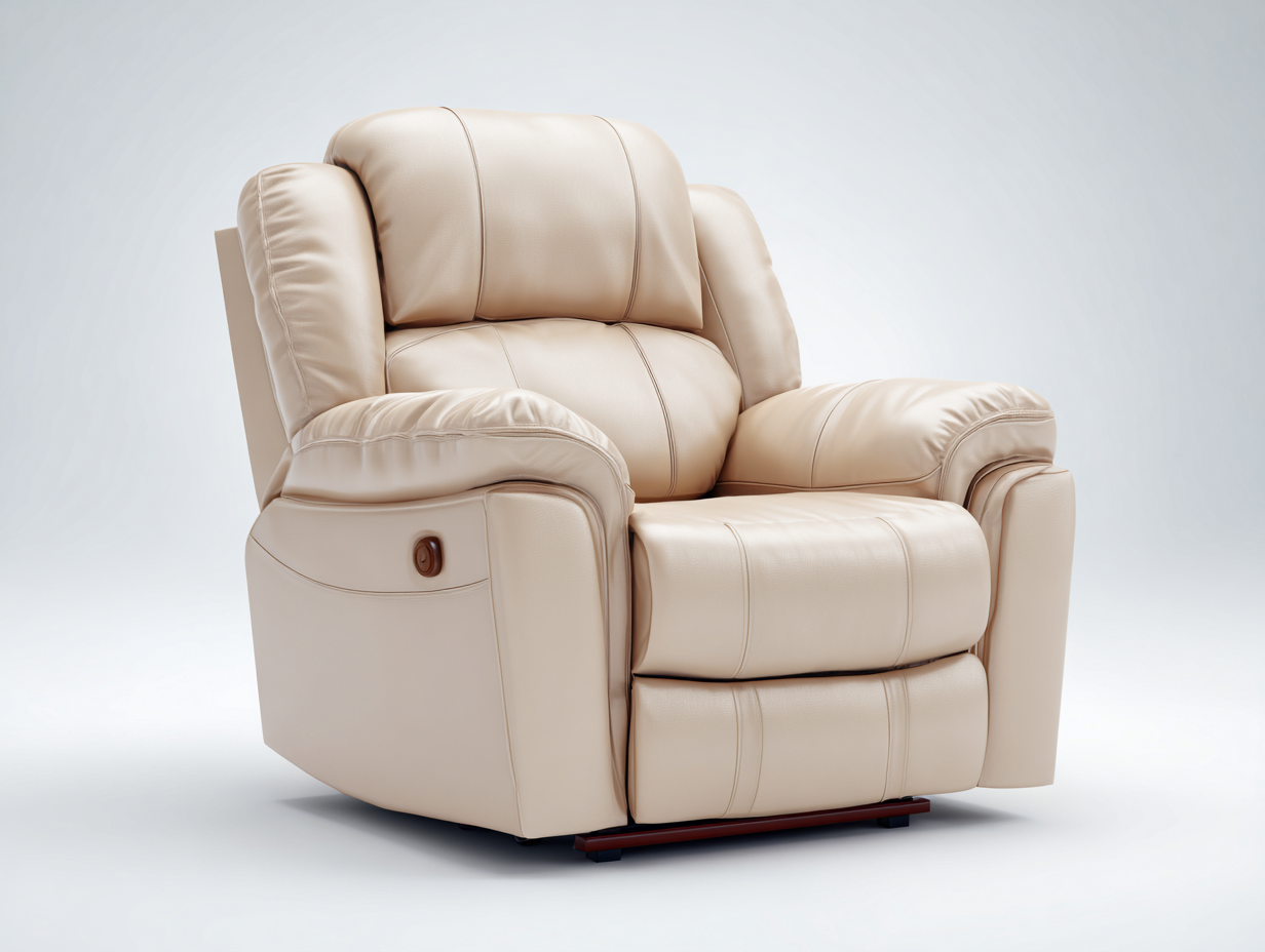 Der Bezug besteht aus strapazierfähigem Kunstleder in Beige und überzeugt durch seine glatte Oberfläche und pflegeleichte Eigenschaften. Sitzfläche, Rückenlehne und Armlehnen sind mit hochwertigem Schaumstoff gepolstert und sorgen für angenehmen Komfort. Das stabile Innenrahmengestell gewährleistet eine zuverlässige Stabilität und unterstützt die langlebige Nutzung im Alltag.